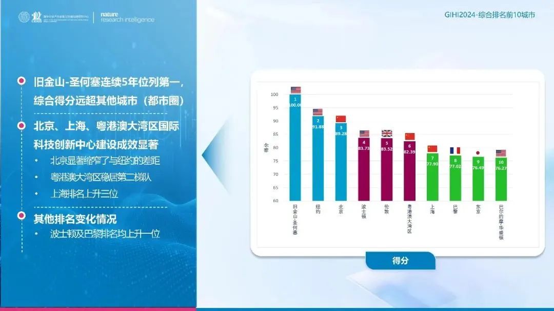 《國(guó)際科技創(chuàng)新中心指數(shù)2024》報(bào)告顯示,舊金山-圣何塞、紐約、北京、波士頓、倫敦排名全球前五位,北京自2022年以來(lái)連續(xù)3年排名全球第三位,并與全球第2名的差距逐年縮小。在科學(xué)中心維度,北京連續(xù)2年排名全球第2,與全球第一紐約差距大幅縮窄,基本持平。在創(chuàng)新高地維度,北京首次超過(guò)紐約,位居全球第2。在創(chuàng)新生態(tài)維度,北京從去年的全球第11上升至第9,重回前十。