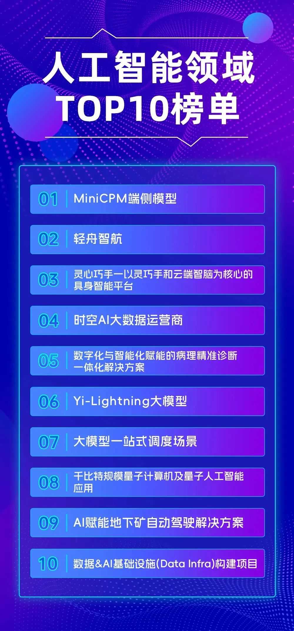 最終,MiniCPM端側模型、輕舟智航等10個項目脫穎而出,獲得第八屆中關村國際前沿科技大賽人工智能領域TOP10榮譽稱號。