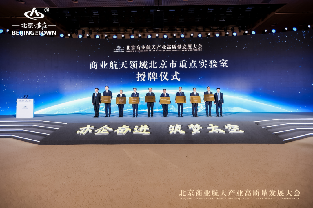 北京市科委、中關(guān)村管委會黨組書記、主任張繼紅,經(jīng)開區(qū)工委書記張強為商業(yè)航天領(lǐng)域北京市重點實驗室授牌