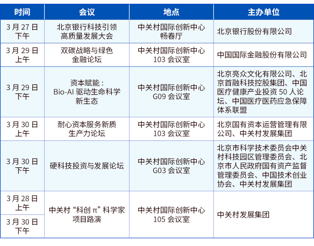 為了探討金融支持培育新質(zhì)生產(chǎn)力的有效路徑,2025中關(guān)村論壇年會(huì)將在耐心資本服務(wù)新質(zhì)生產(chǎn)力論壇、硬科技投資與發(fā)展論壇、雙碳戰(zhàn)略與綠色金融論壇、北京銀行科技引領(lǐng)高質(zhì)量發(fā)展大會(huì)、資本賦能:Bio-AI驅(qū)動(dòng)生命科學(xué)新生態(tài)、中關(guān)村“科創(chuàng) π” 科學(xué)家項(xiàng)目路演等平行論壇及配套活動(dòng)中,匯聚專(zhuān)家學(xué)者及行業(yè)精英,共繪與新質(zhì)生產(chǎn)力相契合的投融資新畫(huà)卷。