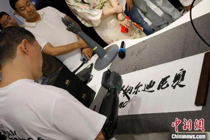 殘疾人使用高科技智能輔具書寫毛筆字 來源:中新網(wǎng)
