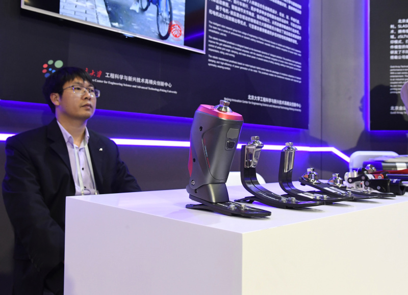 這是在2019中關(guān)村論壇中關(guān)村國際前沿科技成果展中所展示的智能假肢(10月16日攝)。 新華社發(fā)(任超 攝)