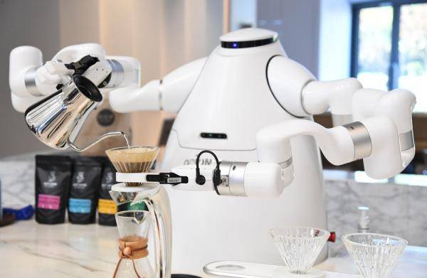 9月17日,咖啡機器人在2020中關村論壇主會場內(nèi)“工作”。