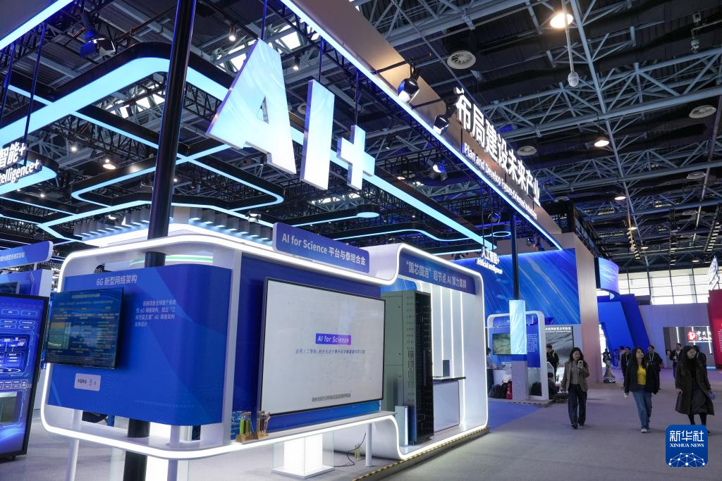 3月28日,在中關(guān)村展示中心常設(shè)展內(nèi),參觀者在“人工智能+”展示區(qū)域參觀。