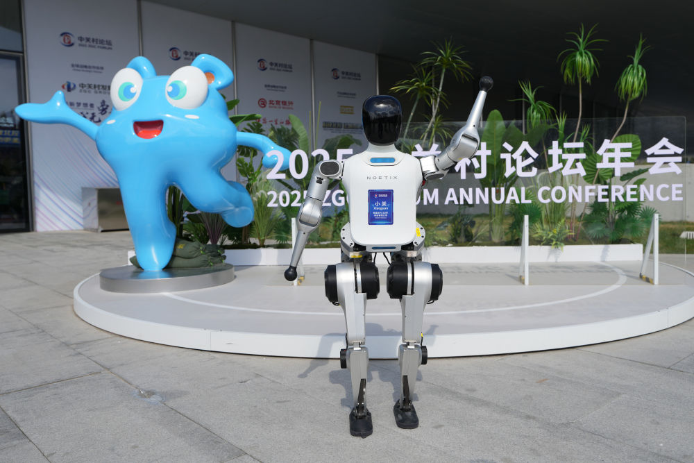 在中關(guān)村國際創(chuàng)新中心,一款名為“小關(guān)”的人形機器人向與會嘉賓招手(3月27日攝)。新華社記者 鞠煥宗 攝