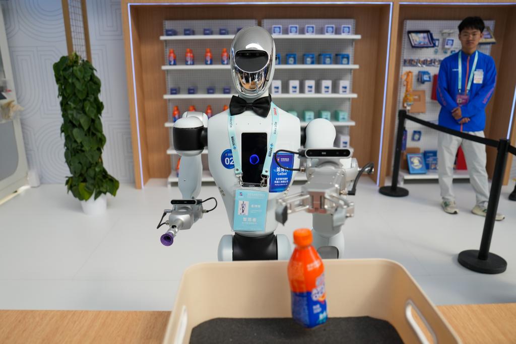 3月27日,在中關(guān)村國際創(chuàng)新中心,一款名為“蓋博特”的機(jī)器人在為顧客取商品。新華社記者 鞠煥宗 攝