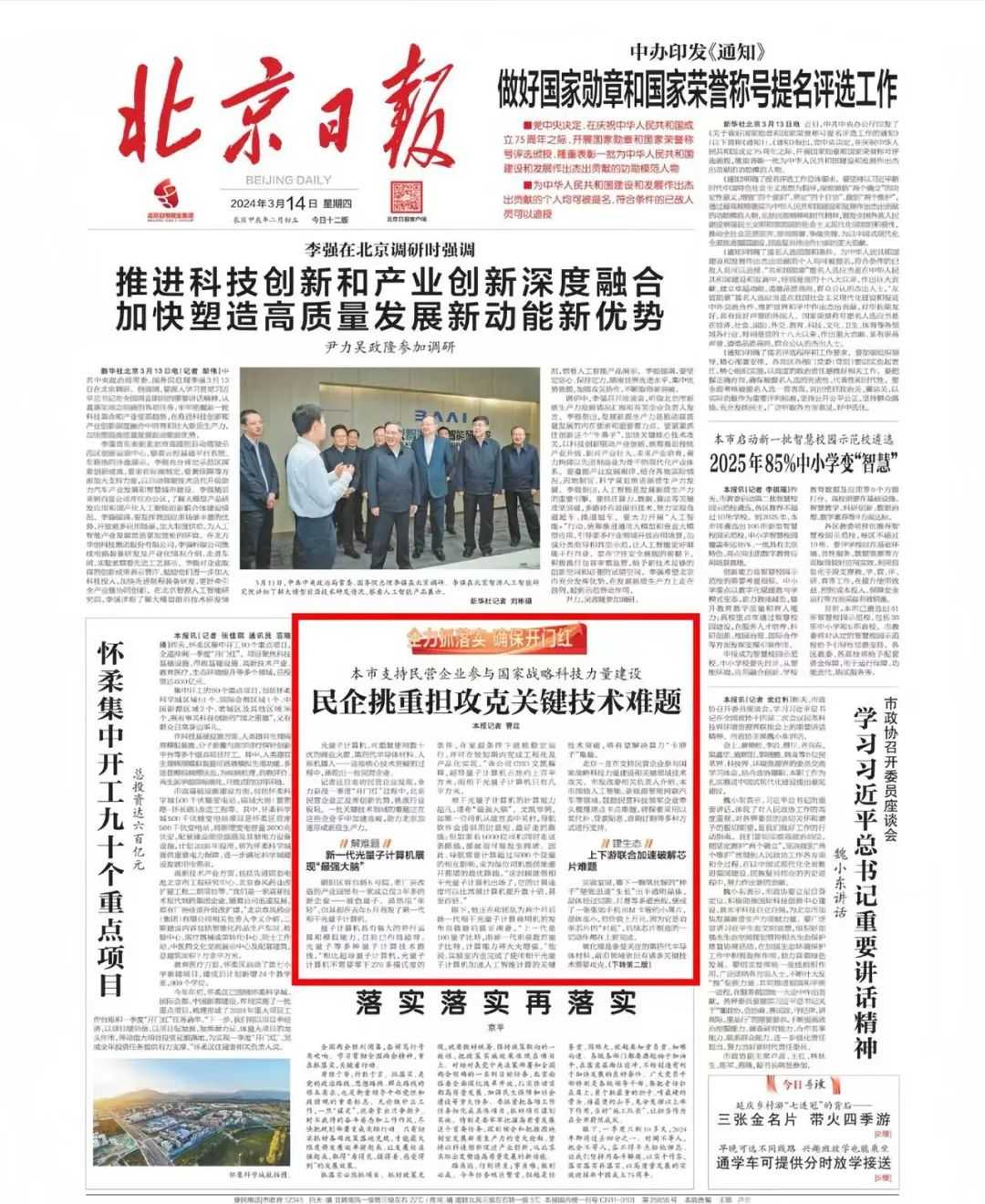 記者近日走訪民營企業(yè)發(fā)現(xiàn),全力奮戰(zhàn)一季度“開門紅”過程中,北京民營企業(yè)正發(fā)揮創(chuàng)新優(yōu)勢,挑戰(zhàn)行業(yè)極限。一批關(guān)鍵技術(shù)領(lǐng)域的難題正在這些企業(yè)手中加速攻破,助力北京加速形成新質(zhì)生產(chǎn)力。