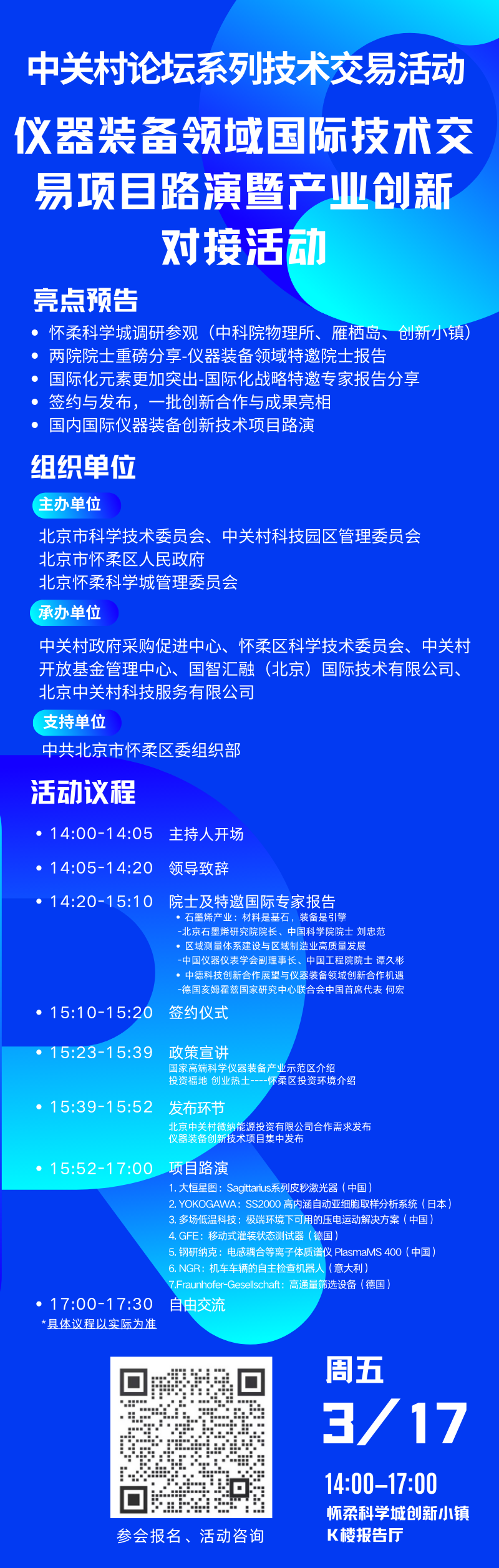 主辦單位:北京市科學(xué)技術(shù)委員會(huì)、中關(guān)村科技園區(qū)管理委員會(huì),北京市懷柔區(qū)人民政府,北京懷柔科學(xué)城管理委員會(huì)共同主辦。