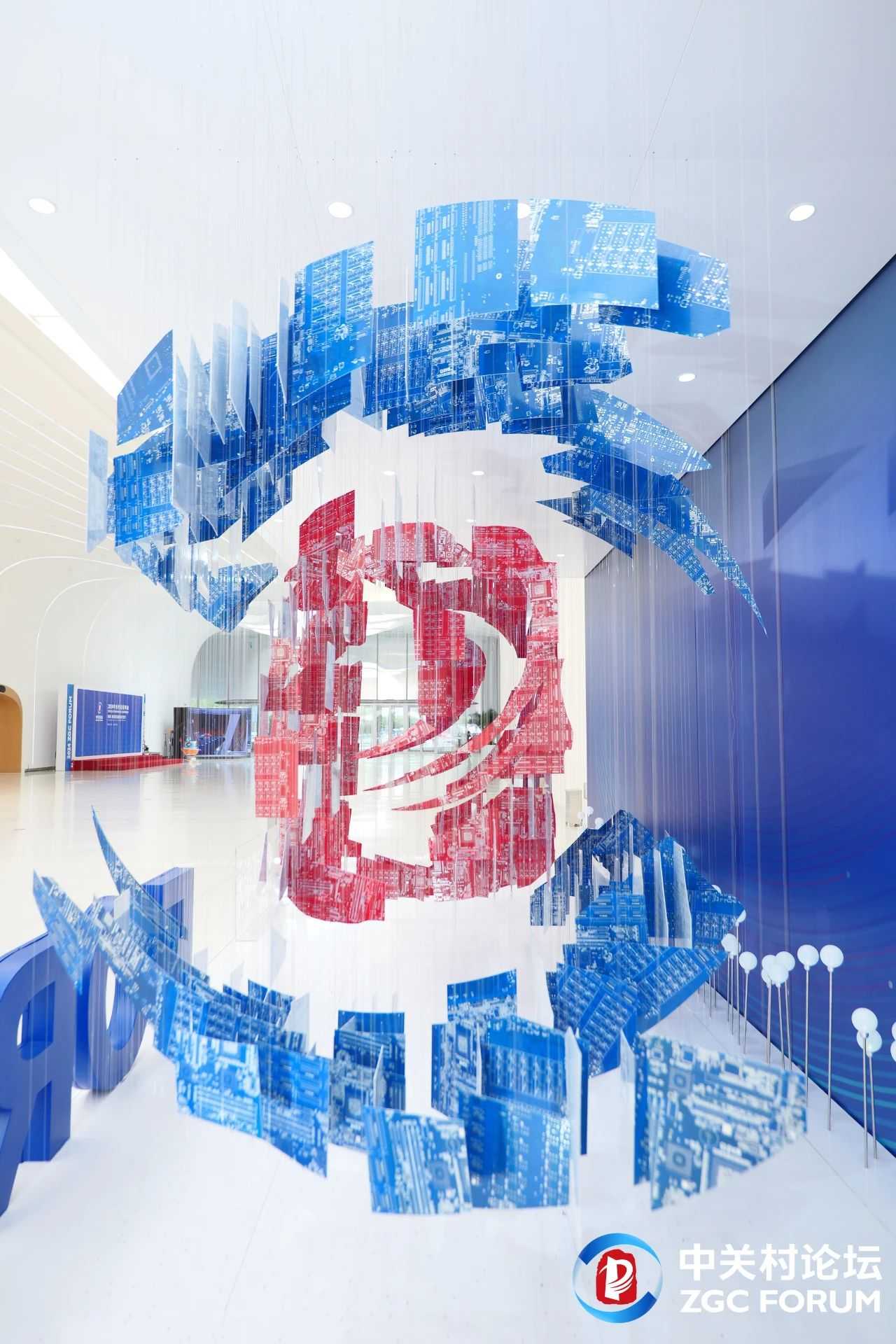 2024中關(guān)村論壇年會進一步深耕綠色辦會理念,擴大綠色物料的應用范圍,在各環(huán)節(jié)減少一次性用品使用。本屆論壇年會首次策劃由重達1噸的廢舊電子元件和800片廢舊電路板制成的“轉(zhuǎn)·變”環(huán)保藝術(shù)裝置,運用視錯覺的原理對裝置分散連接,通過不同的視角呈現(xiàn)中關(guān)村的英文簡稱“ZGC”與論壇標識,傳遞科技向善理念,成為中關(guān)村論壇綠色低碳理念的最佳載體。