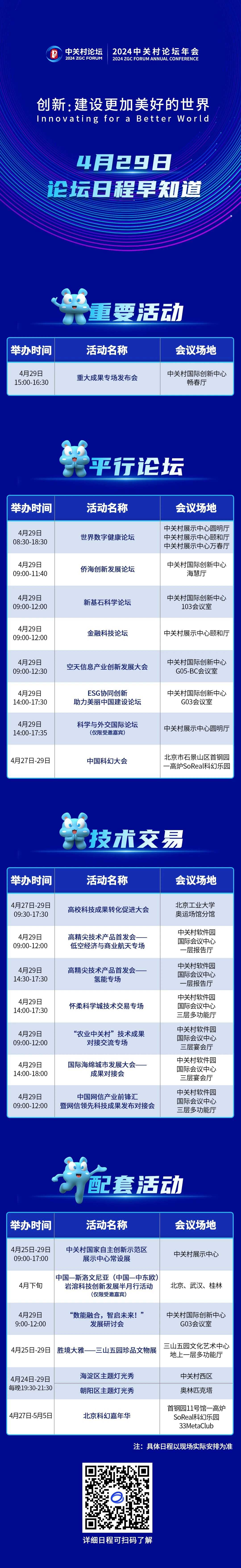 提前劇透!一圖了解4月29日中關(guān)村論壇年會日程!