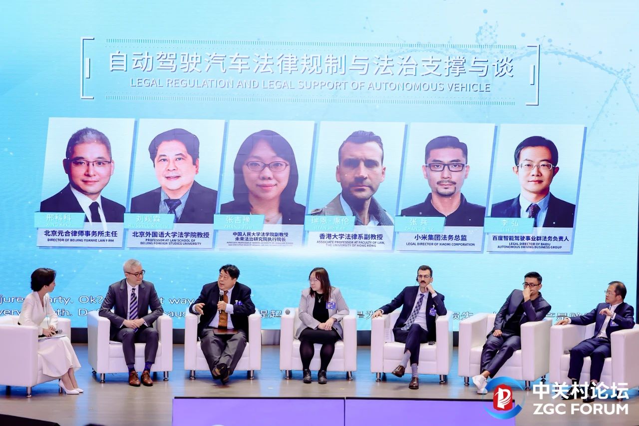 與談環(huán)節(jié)以“自動駕駛汽車法律規(guī)制與法治支撐”為主題,北京元合律師事務(wù)所主任邢科科,北京外國語大學(xué)法學(xué)院教授劉觀霖,中國人民大學(xué)法學(xué)院副教授、未來法治研究院執(zhí)行院長張吉豫,香港大學(xué)法律系副教授瑞恩·惠倫,小米集團(tuán)法務(wù)總監(jiān)張兵,百度智能駕駛事業(yè)群法務(wù)負(fù)責(zé)人李弘圍繞自動駕駛現(xiàn)行法律適用、技術(shù)革新對立法帶來的挑戰(zhàn)、國內(nèi)外最新制度規(guī)范、自動駕駛技術(shù)創(chuàng)新政策等話題展開交流研討,集聚智慧、凝聚共識。