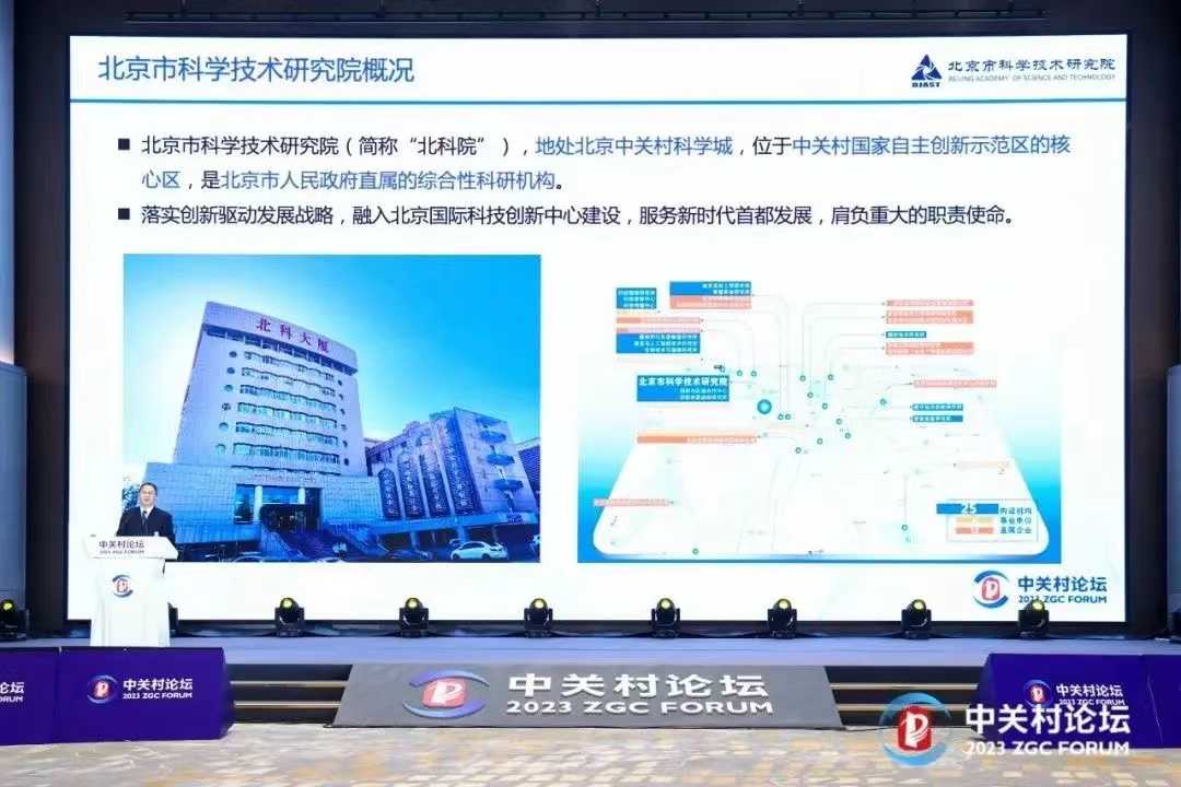北京市科學(xué)技術(shù)研究院院長(zhǎng)伍建民發(fā)表《關(guān)于科研機(jī)構(gòu)促進(jìn)科技成果轉(zhuǎn)化的思考》的演講。