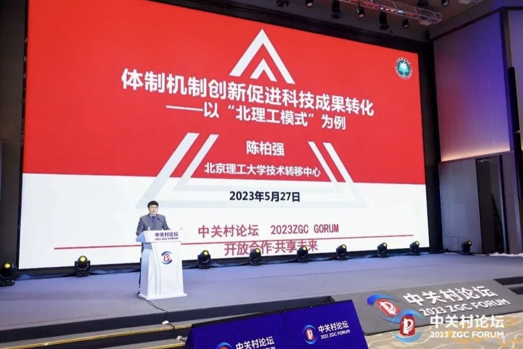 北京理工大學(xué)技術(shù)轉(zhuǎn)移中心主任陳柏強(qiáng)發(fā)表《體制機(jī)制創(chuàng)新促進(jìn)科技成果轉(zhuǎn)化——以“北理工模式”為例》的演講。