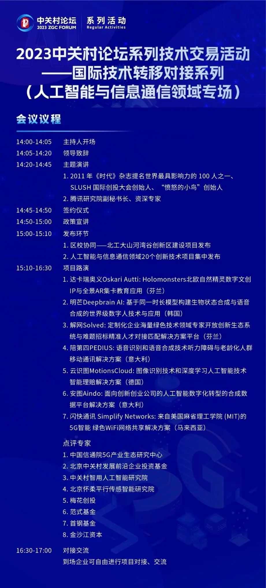 2023中關(guān)村論壇系列技術(shù)交易活動(dòng)——國際技術(shù)轉(zhuǎn)移對(duì)接系列(人工智能與信息通信領(lǐng)域?qū)?chǎng))即將舉辦。本次活動(dòng)聚焦“人工智能與信息通信”領(lǐng)域,深度鏈接國內(nèi)外人工智能與信息通信產(chǎn)業(yè)資源,搭建國際技術(shù)轉(zhuǎn)移對(duì)接平臺(tái),推動(dòng)人工智能與信息通信產(chǎn)業(yè)合作交流。