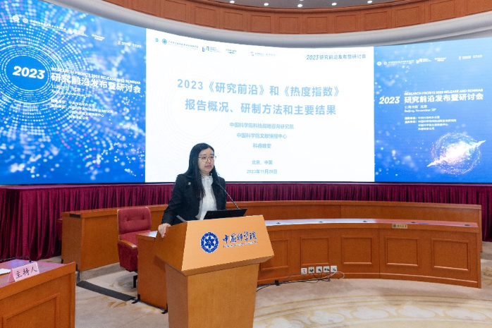 11月28日,2023中關村論壇系列活動——研究前沿發(fā)布暨研討會舉辦?;顒佑芍袊茖W院戰(zhàn)略咨詢研究院、中國科學院文獻情報中心等單位共同主辦,面向全球發(fā)布了《2023研究前沿》報告和《2023研究前沿熱度指數》報告。來自高校、科研院所和企事業(yè)單位的300余人現場參會,45萬名公眾通過網絡觀看直播。